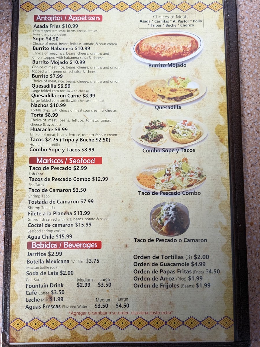 Homemade tortilla with your choice of meat.